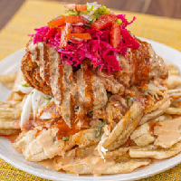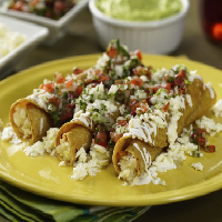 Con queso, frijoles, arroz, carne: (Pollo o Chorizo).