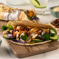 Con arroz y frijoles, 3 tortillas de maíz o 1 de harina, lechuga, pico y aguacate.