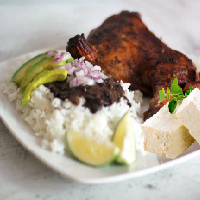 De asado, pollo o chorizo, incluye ensalada, pico, frijoles y arroz.