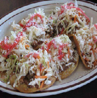 Con queso, frijoles, arroz, carne: (Pollo o Chorizo).