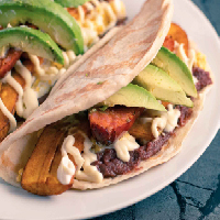 Con arroz y frijoles, 3 tortillas de maíz o 1 de harina, lechuga, pico y aguacate.