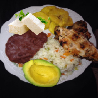De asado, pollo o chorizo, incluye ensalada, pico, frijoles y arroz.